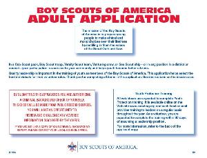 ADULT APPLICATION For Learning for Life district and council committee participants and Exploring or Explorer Club adult leaders. The Boy Scouts say they have improved their youth protection policies the past decade and have initiated such practices as third-party, computerized background checks on all new adult volunteers.